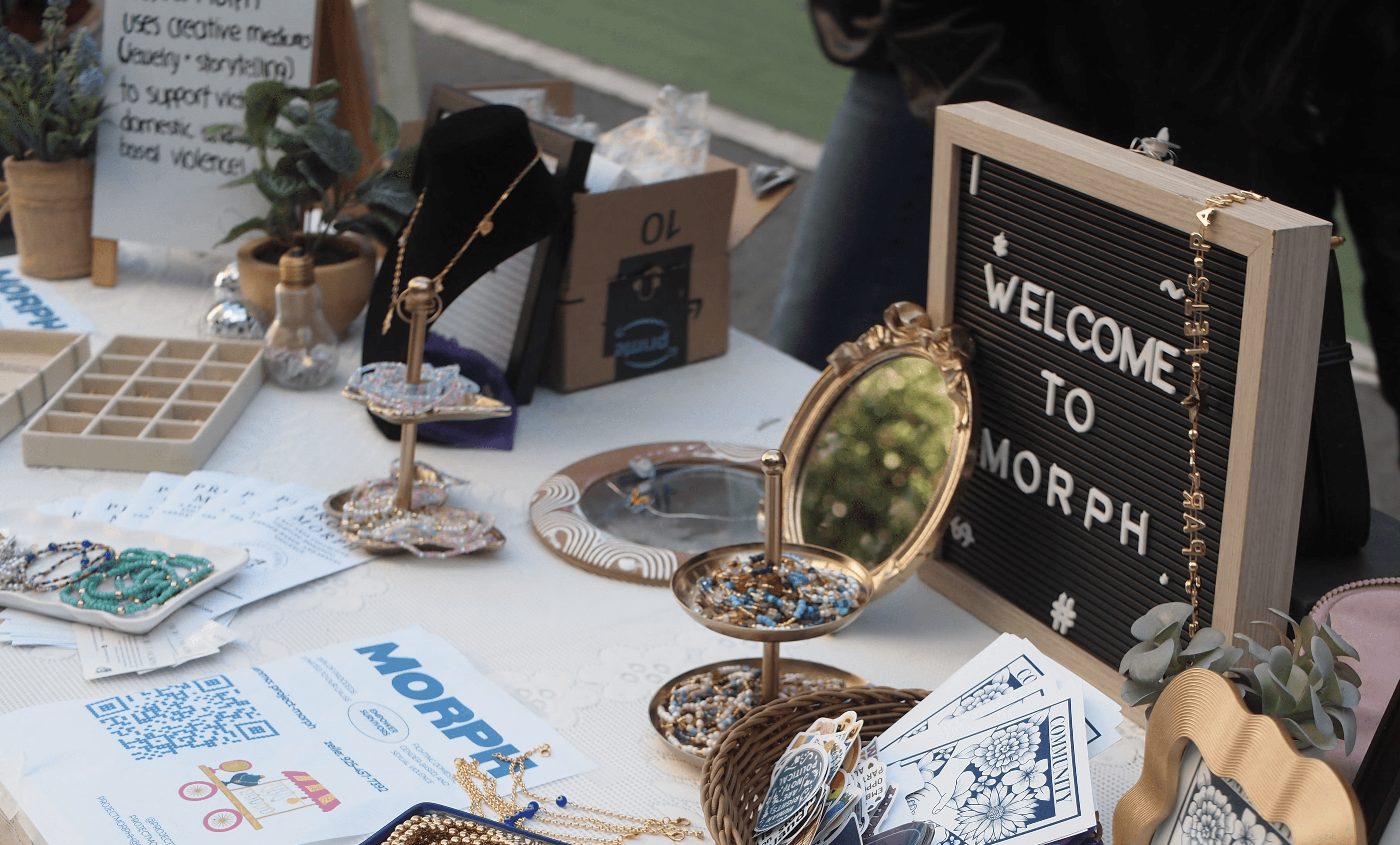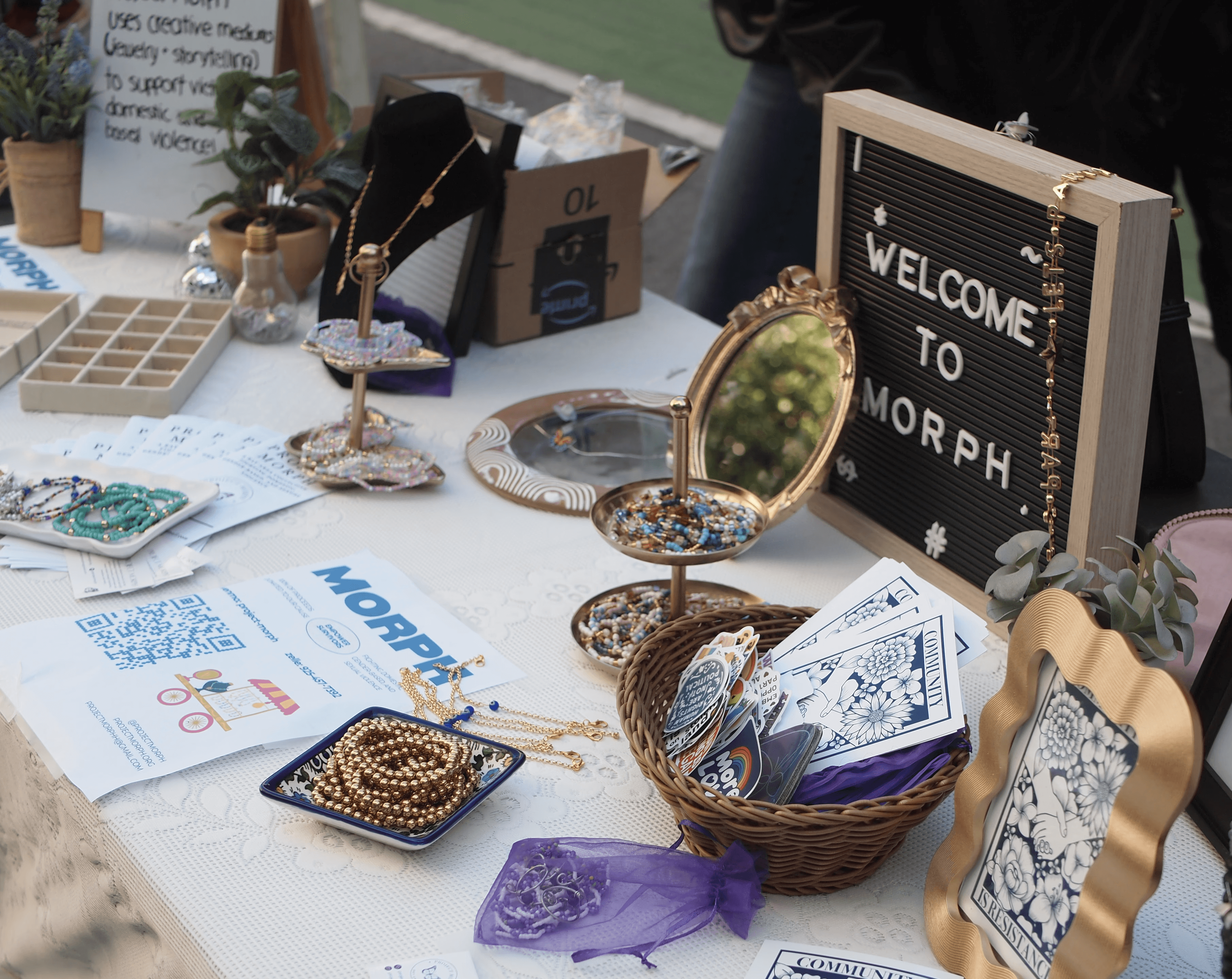 Handcrafted pieces sold to raise funds and awareness for survivors of domestic violence.
